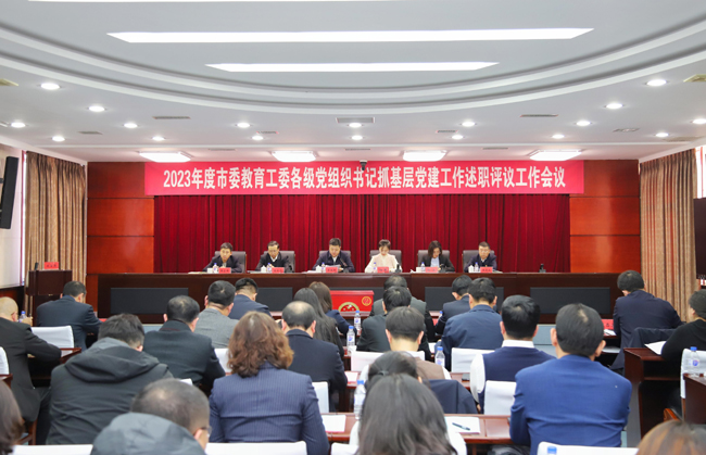 为深入学习贯彻习近平新时代中国特色社会主义思想,全面落实新时代党的建设总要求和新时代党的组织路线,进一步督促各级党组织书记认真履职尽责,1月5日下午,市委教育工委召开2023年度党组织书记抓基层党建工作述职评议考核会议。市委教育工委书记,市教育局党组书记、局长李捷轩主持会议。市委组织部组织三科副科长杨策到会指导。