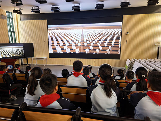 活动现场,近百名少先队员身着整齐校服,胸前鲜艳的红领巾与“红领巾的光影记忆”主题字幕交相辉映,汇聚成一片蓬勃向上的红色海洋。铁西区地直街小学校少工委组织少先队员观看影片《二小放牛郎》,通过少年英雄王二小的感人事迹,让少先队员们了解革命战争年代少年先锋的英勇壮举。吉林师范大学附属实验学校(小学部)少工委组织少先队员观看影片《长空之王》,通过新时代试飞员的真实事迹,深入了解与战机共舞蓝天的英雄群体,真切感受到他们为祖国航空事业拼搏奉献的精神,进一步深化了对国家科技实力与国防建设的认知。