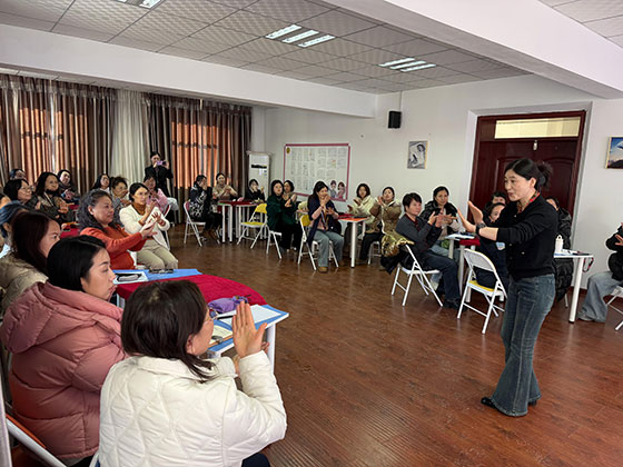 在“十分钟快充”催眠减压环节,伴随着轻柔的背景音乐,董丽娜带领教师们通过“调息+调身+调心+安全处所”的组合方式,觉察身体感受、放松身心,释放日常教学与心理辅导工作积累的压力,在沉浸式体验中重拾身心平衡。