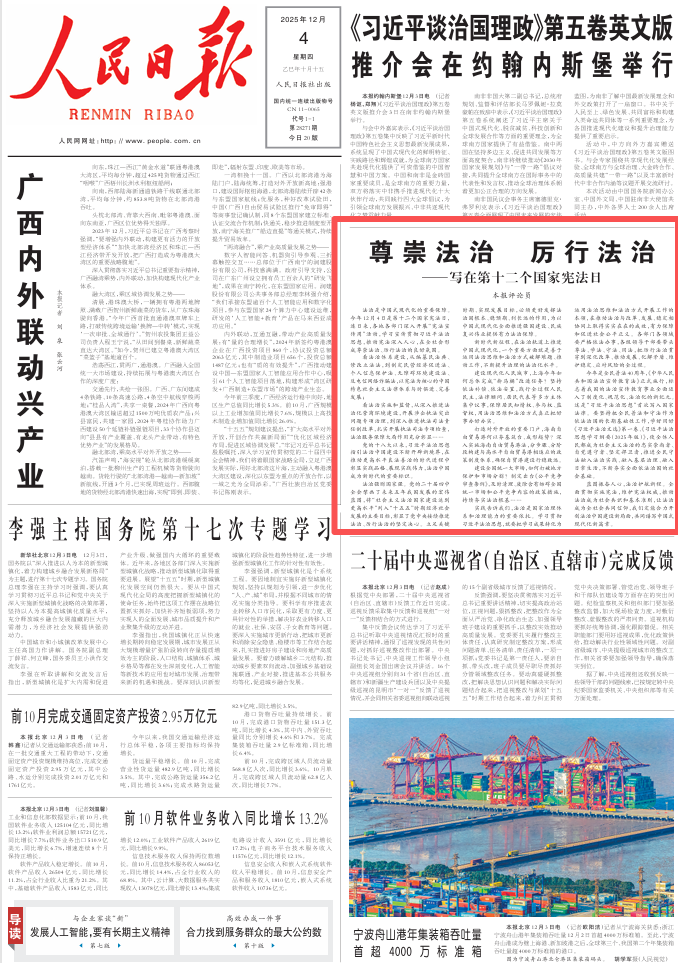 法治是中国式现代化的重要保障。今年12月4日是第十二个国家宪法日,连日来,各地各部门深入开展“宪法宣传周”活动,学习宣传贯彻习近平法治思想,推动宪法深入人心,在全社会形成尊崇法治、厉行法治的良好氛围。